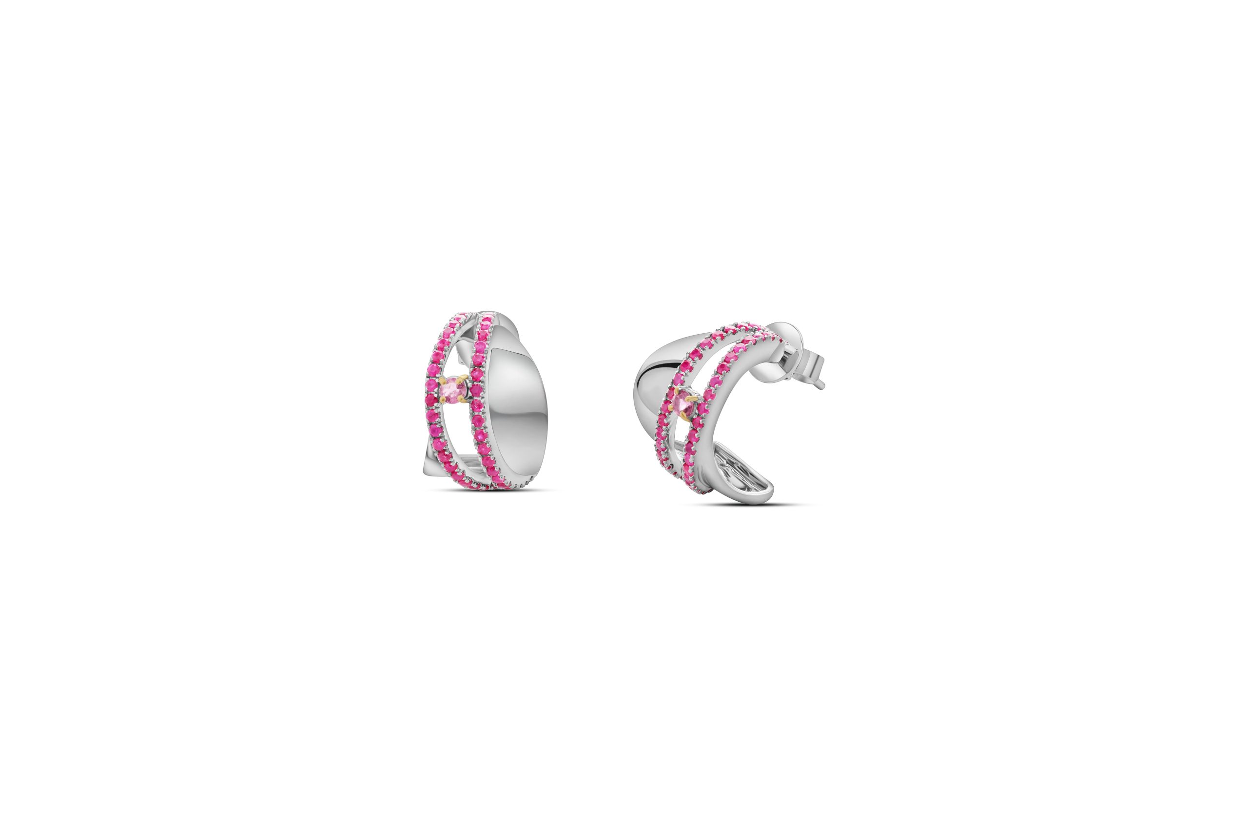 SKU: EYE-EAR-18KW-RUB-TOU DESCRIPTION: Eye Earrings COLLECTION: EYE GOLD: 18 Karat white gold GEMSTONES: Ruby, Pink Tourmaline. TOTAL WEIGHT: 8.39 grams GEM WEIGHT (Approx): 1.63 Carats