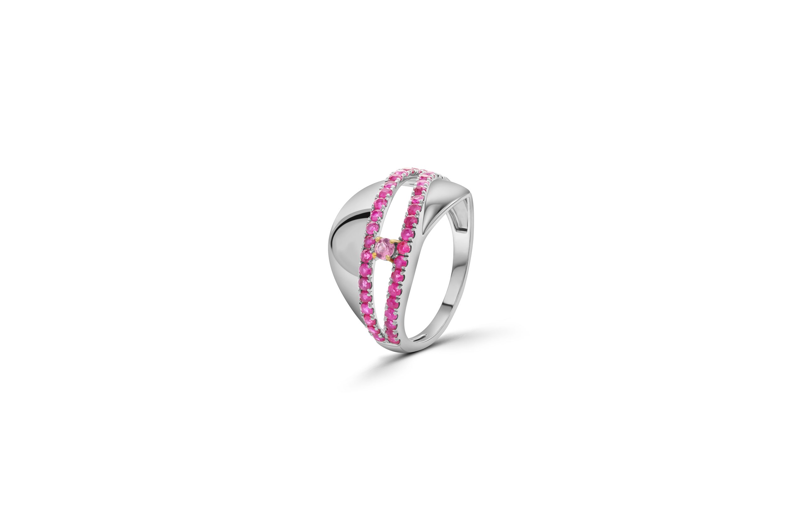 SKU: EYE-RING1-18KW-RUB-TOU DESCRIPTION: Eye Ring COLLECTION: EYE GOLD: 18 Karat white gold GEMSTONES: Ruby, Pink Tourmaline. TOTAL WEIGHT: 3.74 grams GEM WEIGHT (Approx): 1.116 Carats