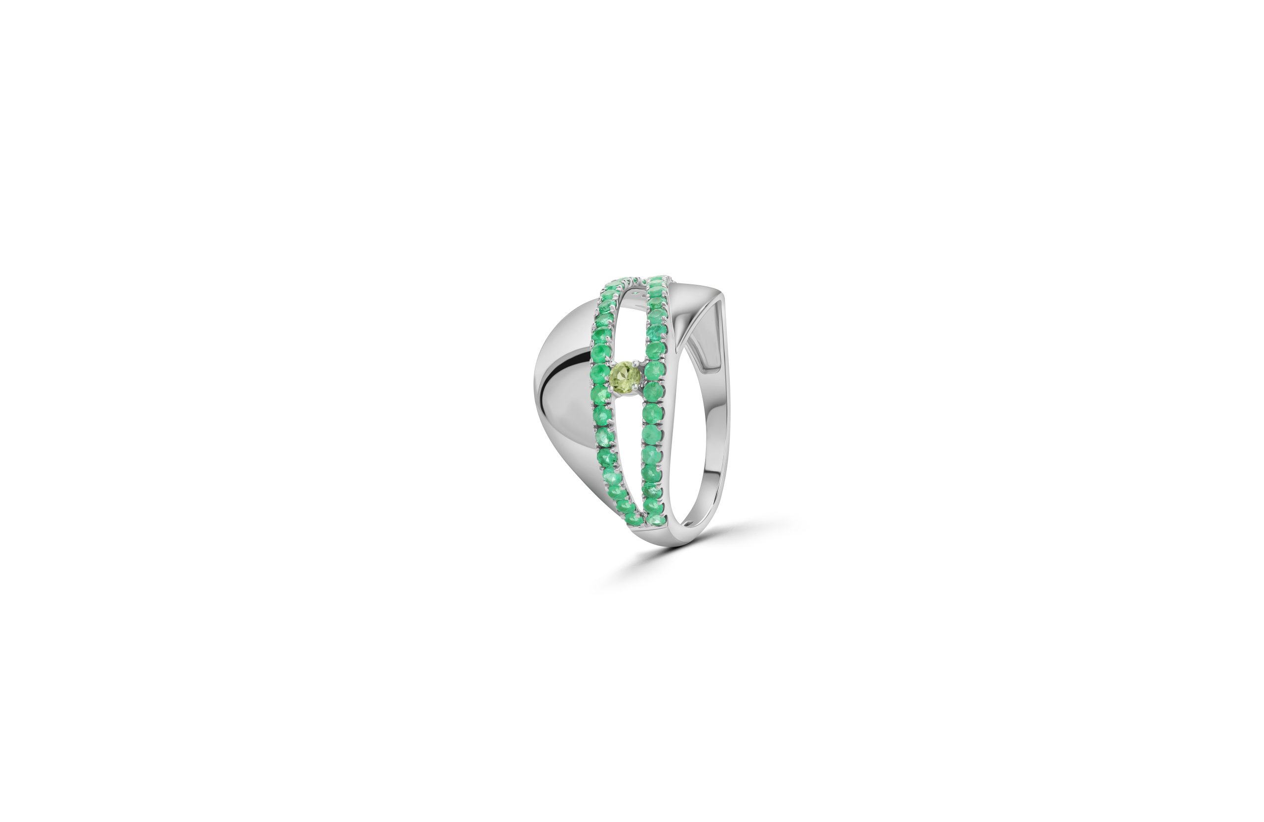 SKU: EYE-RING1-18KW-CIT-TOU DESCRIPTION: Eye Ring COLLECTION: EYE GOLD: 18 Karat white gold GEMSTONES: Emerald, Peridot. TOTAL WEIGHT: 4.01 grams GEM WEIGHT (Approx): 0.845 Carats
