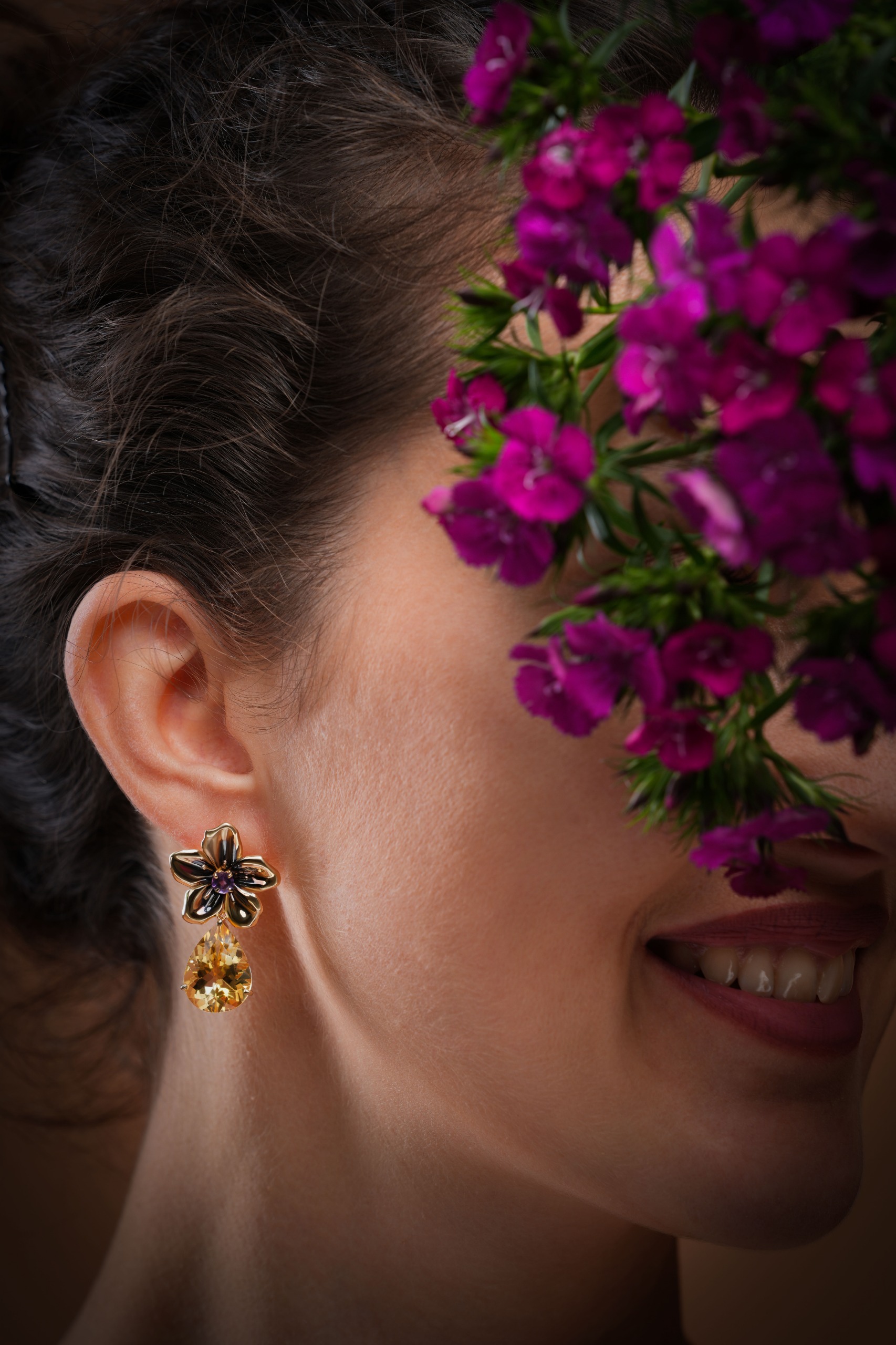 Medium Citrine Drop Periwinkle Earrings