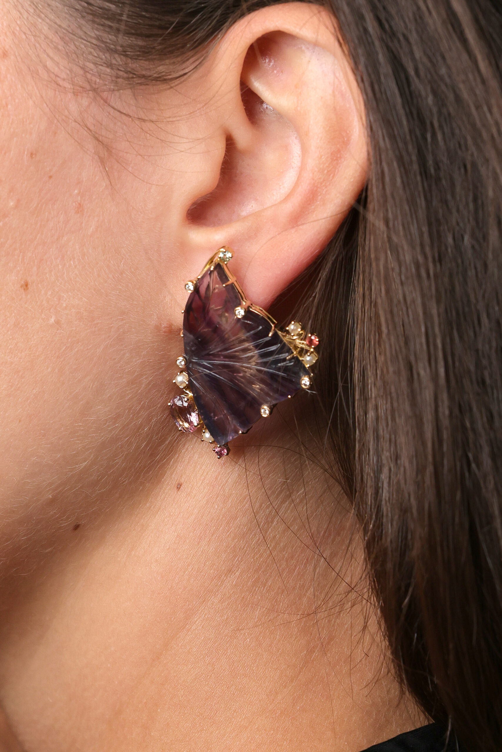 DESCRIPTION: Medium Butterfly Earrings with Pearls Sapphires Diamonds Citrine Maroon Wing