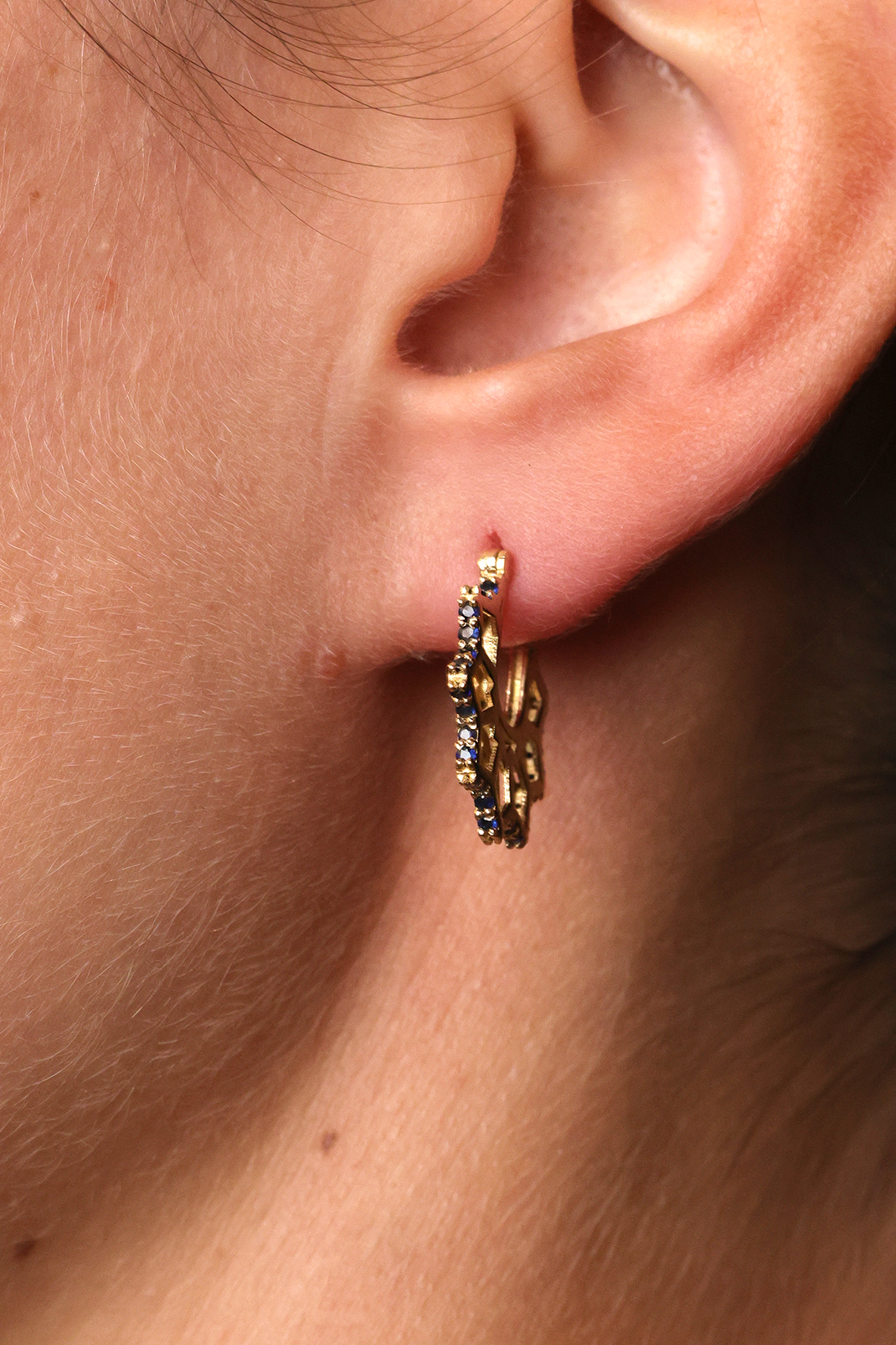 DESCRIPTION: Muharraq Star Earrings with Blue Sapphires